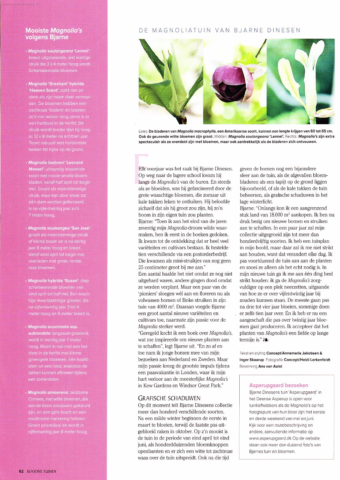 Asperupgaard | Asperupgaard artikler | "De magnoliatuin van Bjarne Dinesen". Seasons Tuinen Voorjaar/Zomer 2009 |